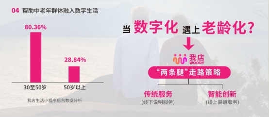 交汇点上的责任:用户构成揭示服务方向作为深耕本土的网络科技,我店科技的用户画像清晰指向责任所在:活跃用户中,30至50岁以上群体占比高达80.36%,其中50岁以上用户达28.84%。这一数据深刻揭示用户正处在“数字化普及”与“人口老龄化”的历史交汇点。中老年用户不仅是服务对象,更是推动优化的重要力量。如何让他们从“数字边缘”走向“舞中央”,成为衡量企业社会价值的关键标尺。