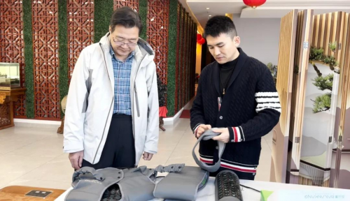 苏凤哲院长是国家第一批优秀中医临床人才,不仅牵头国医大师传承工作站,更主编22部中医著作、手握7项国家发明专利,其在中医特色疗法推广与湿病调理领域的权威地位,与百兰康“智慧热科技”的核心定位高度契合。参观过程中,苏院长先后体验了百兰康核心产品——润暖C30智热床垫与智能可穿戴产品,详细了解了AEER100自动消除电磁辐射技术的原理与应用,对产品“温润养护”的设计理念给予肯定。