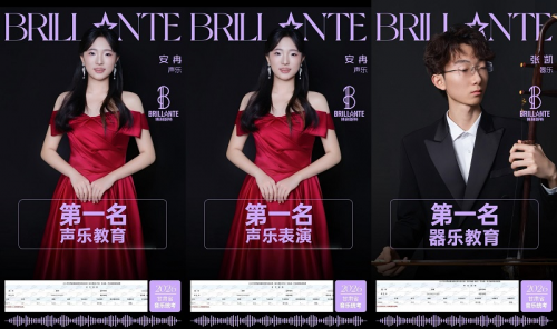 安冉同学,一人包揽声乐教育、声乐表演双料冠军,更以全科最高分加冕全省音乐统考状元;张凯同学,稳夺器乐教育冠军。